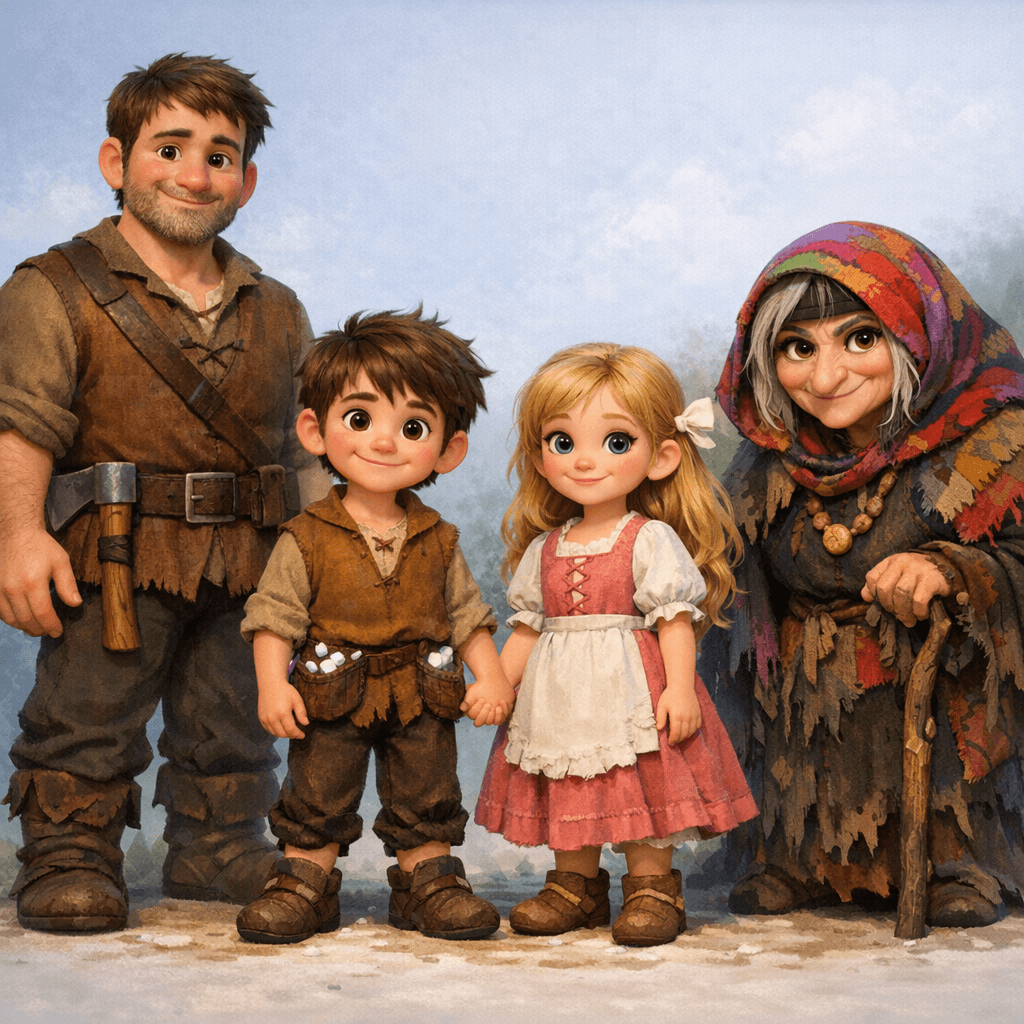 Сопровождайте Гензеля и Гретель в волшебном приключении храбрости и семейного единства в сердце леса.